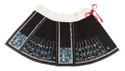 A Black Ground Embroidered Silk Apron Skirt Length 38 inches.