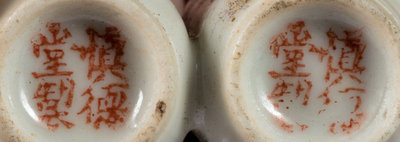 Two Double-Bottle Porcelain Snuff Bottles Height of tallest 2 inches.