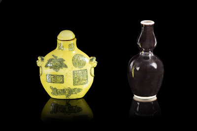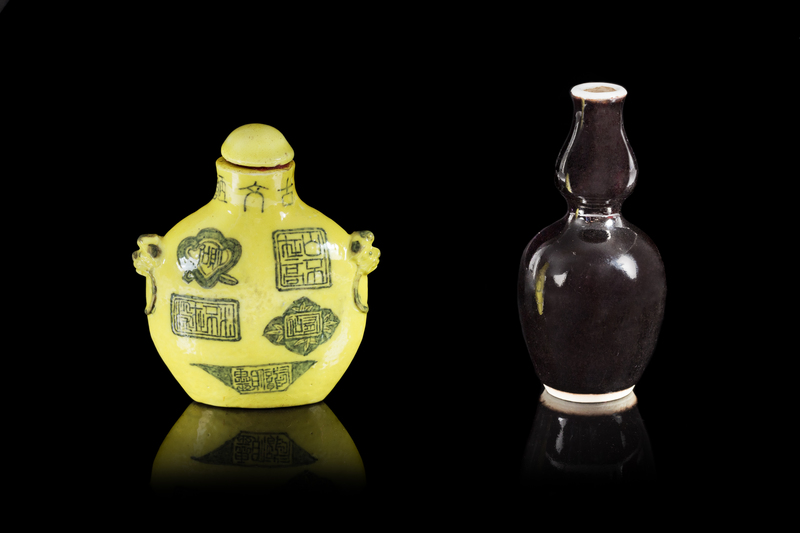 Two Porcelain Snuff Bottles Height of taller 3 1/8 inches.