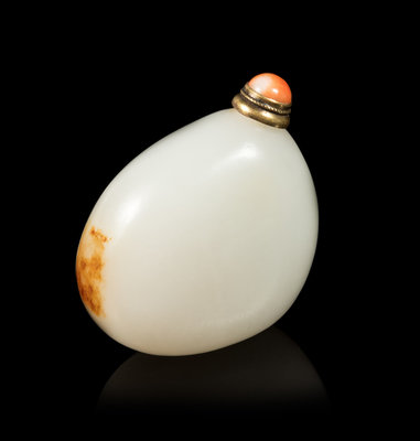 A White and Russet Jade 'Pebble' Snuff Bottle Length 2 inches.