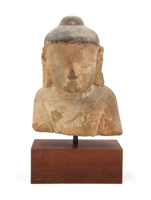 A Southeast Asian Sandstone Head of Buddha Approximate height 9 inches.