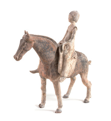 A Rare Chinese Painted Pottery Equestrian Figure Height 16 inches.