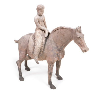 A Rare Chinese Painted Pottery Equestrian Figure Height 16 inches.