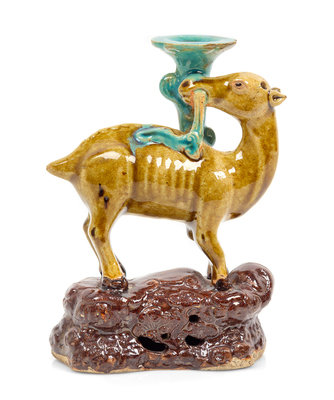 A Sancai Glazed Porcelain Candle Holder Height 6 1/2 inches.