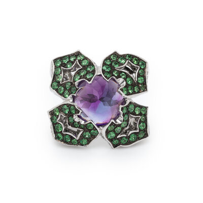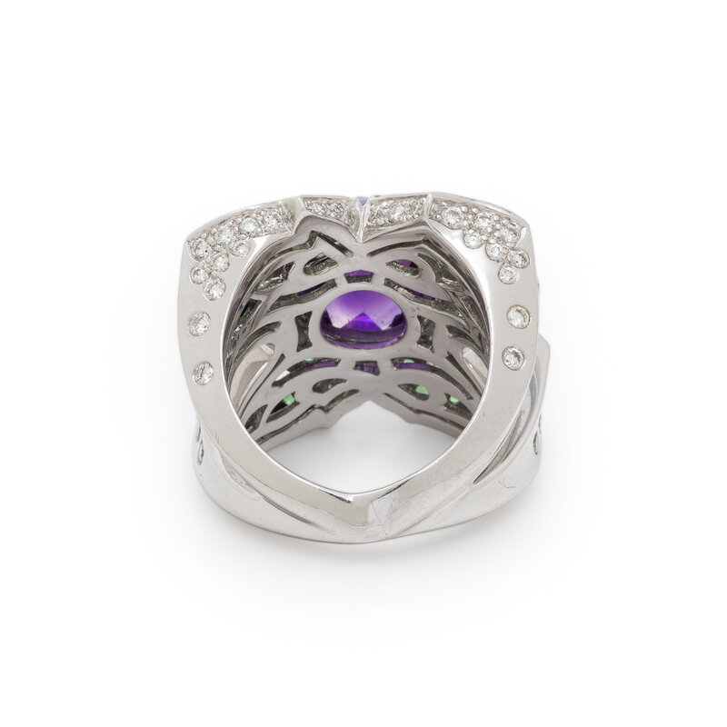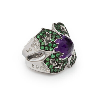 STEPHEN WEBSTER, AMETHYST, TSAVORITE GARNET, DIAMOND, AND WHITE GOLD RING