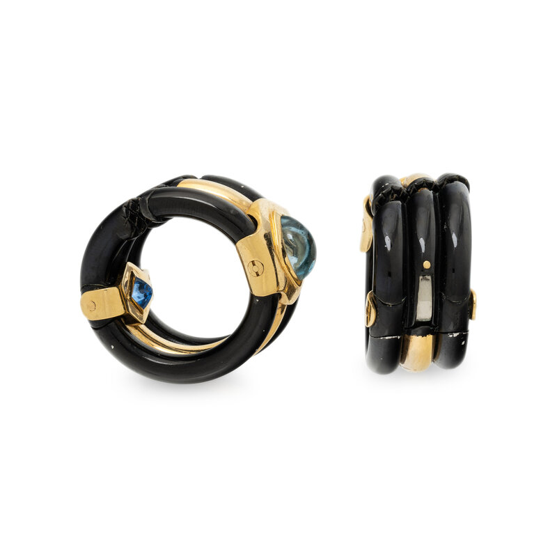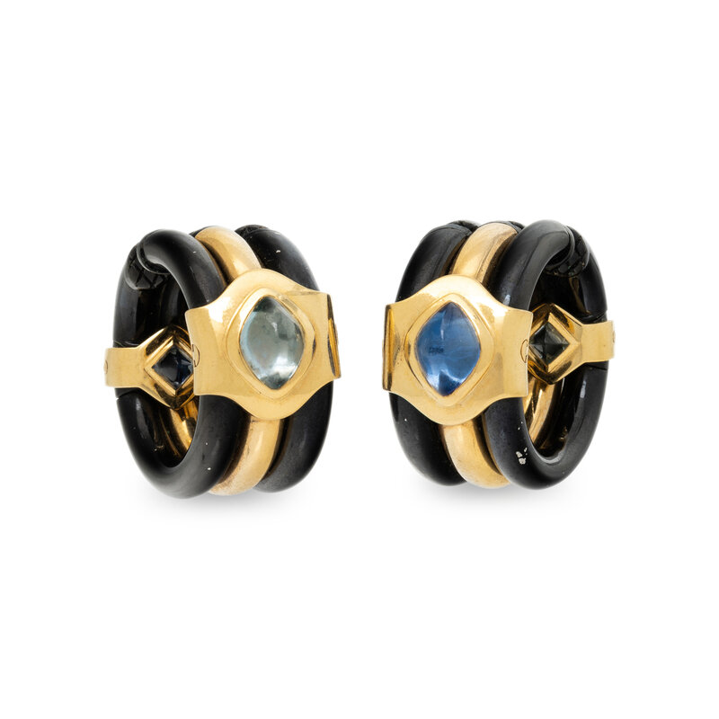 MARINA B., ENAMEL AND GEMSTONE ASYMMETRICAL HOOP EARRINGS