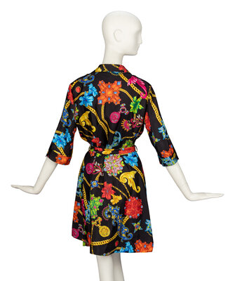 VERSACE, PRINTED SILK WRAP DRESS