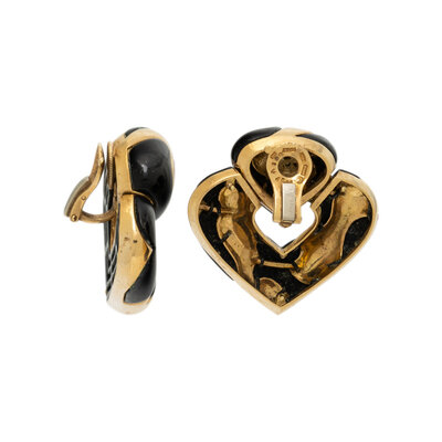 MARINA B., YELLOW GOLD AND BLACK ENAMEL 'PARDY' EARRINGS
