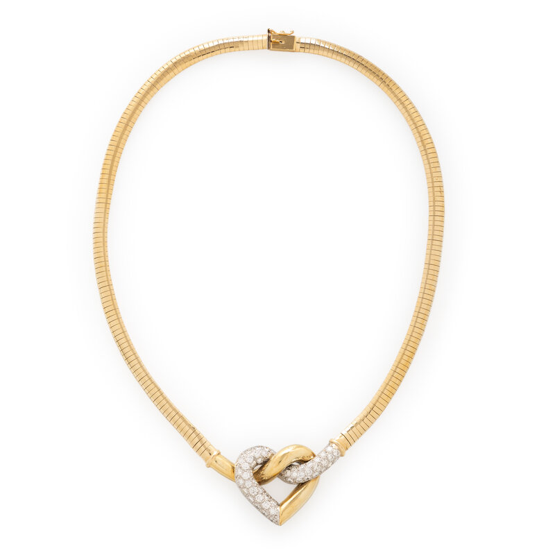 DIAMOND AND YELLOW GOLD HEART NECKLACE
