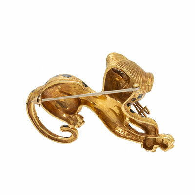 HAMMERMAN BROTHERS, YELLOW GOLD, ENAMEL, AND DIAMOND LEOPARD BROOCH