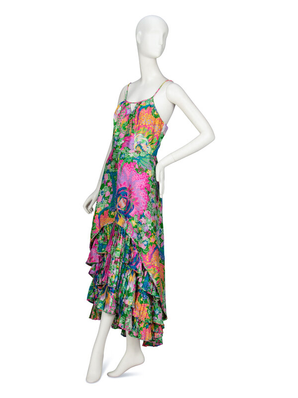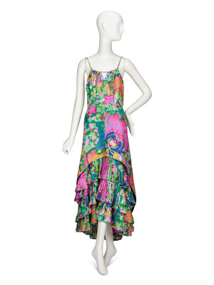 FLORAL-PRINT SILK SUNDRESS, 1960's