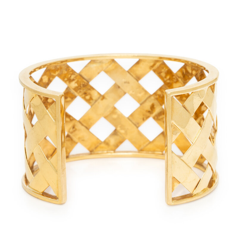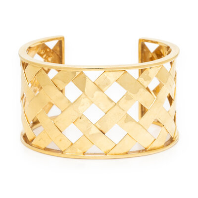 YELLOW GOLD BASKET WEAVE CUFF BRACELET