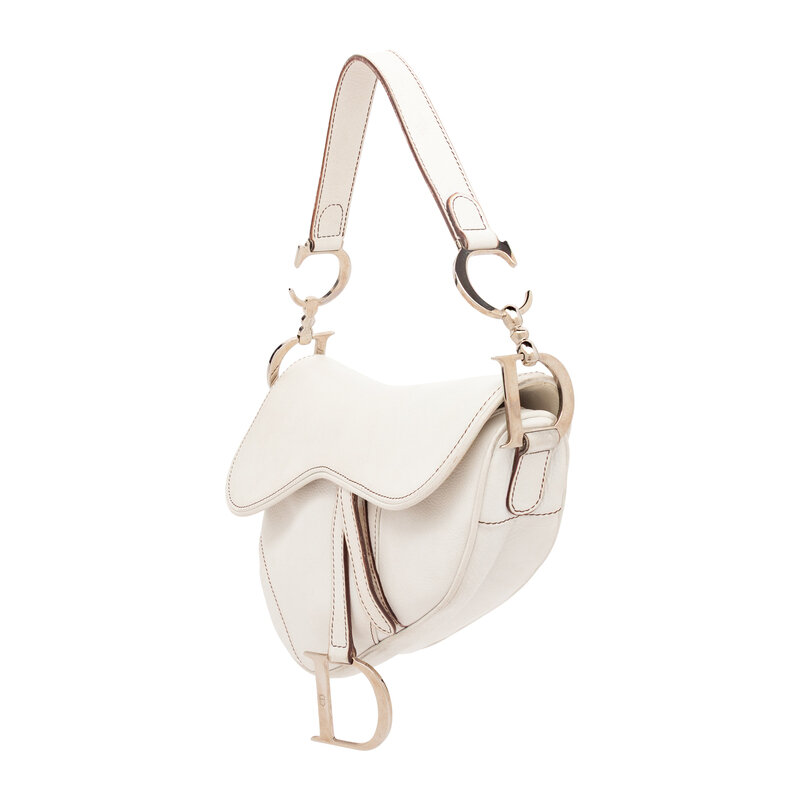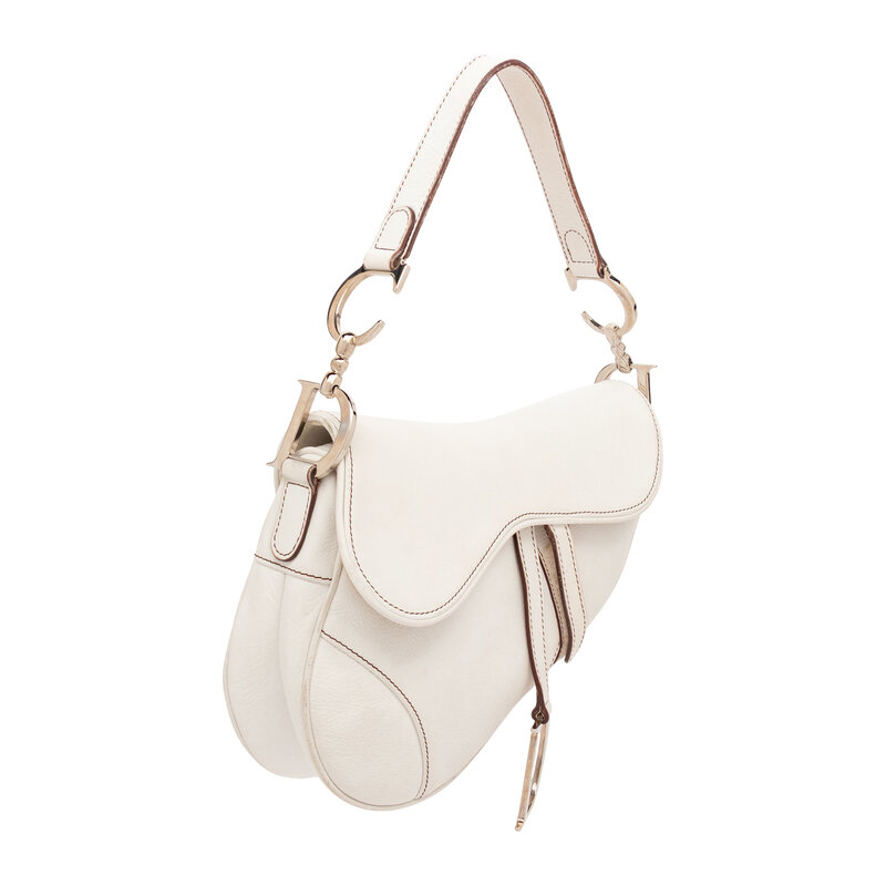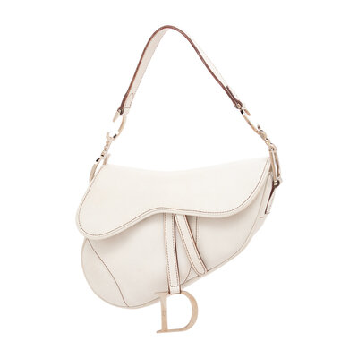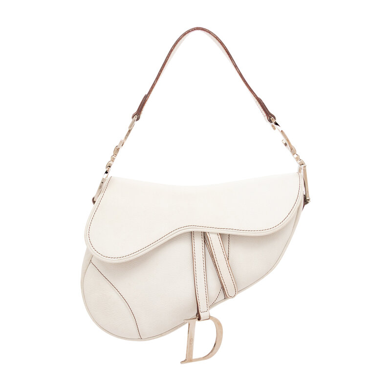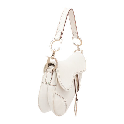 CHRISTIAN DIOR, WHITE LEATHER SADDLE BAG