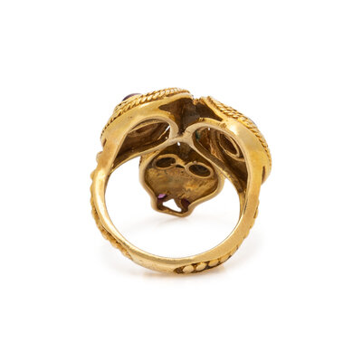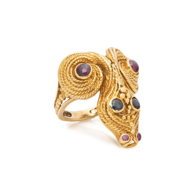 LALAOUNIS, YELLOW GOLD, RUBY, AND SAPPHIRE RING