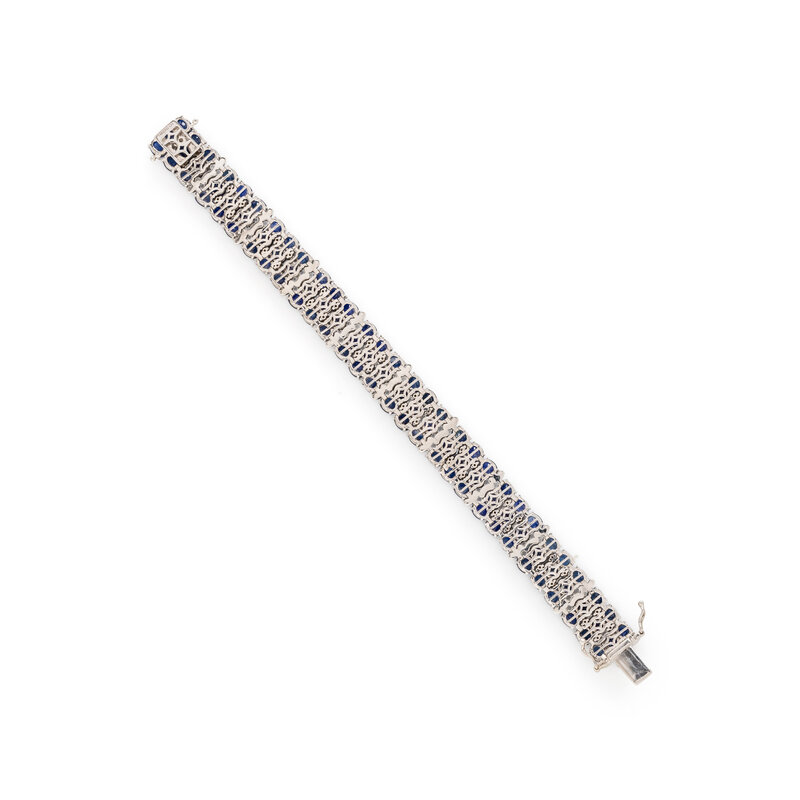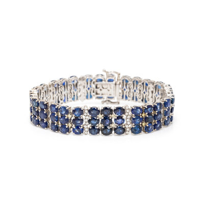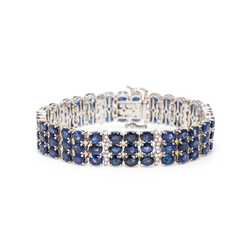 SAPPHIRE, DIAMOND, COLORED DIAMOND, AND WHITE GOLD BRACELET