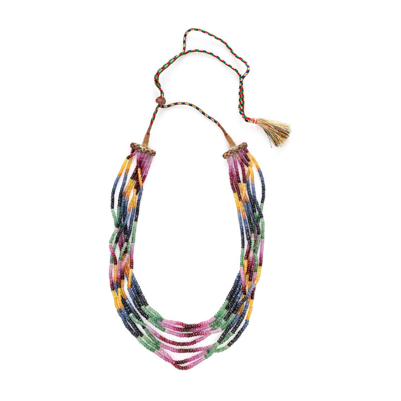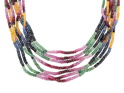 MULTISTRAND RUBY, EMERALD, AND SAPPHIRE BEADED NECKLACE