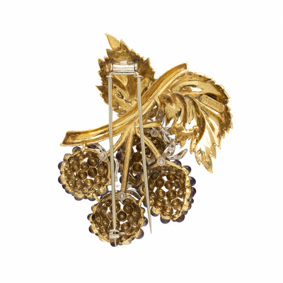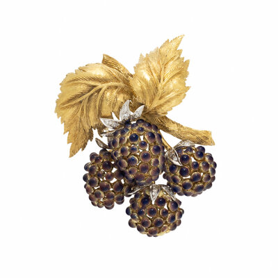 ENAMEL, DIAMOND, AND YELLOW GOLD BERRY BROOCH