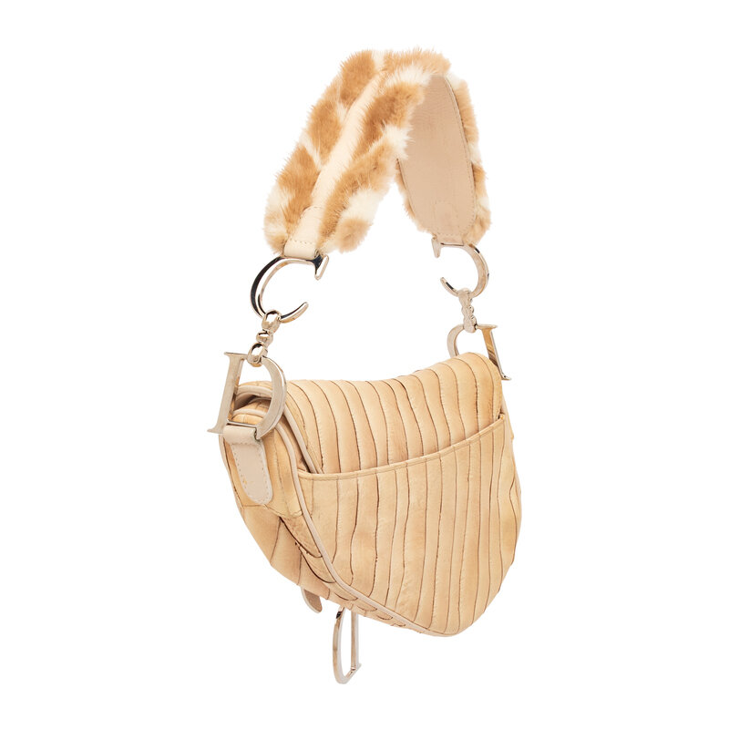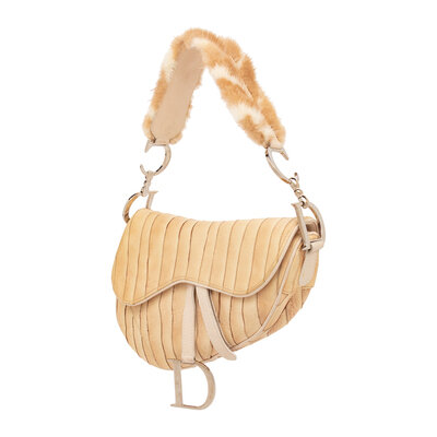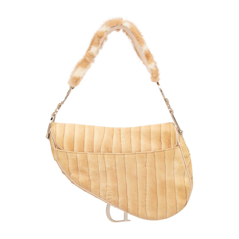 CHRISTIAN DIOR, FUR-TRIM EEL SKIN SADDLE BAG