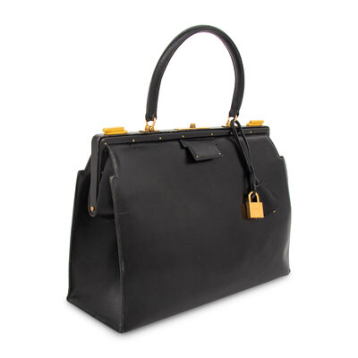 Sac 404 handbag in Noir Box leather with gold-plated hardware. Locking push-lock closure and leather handle.