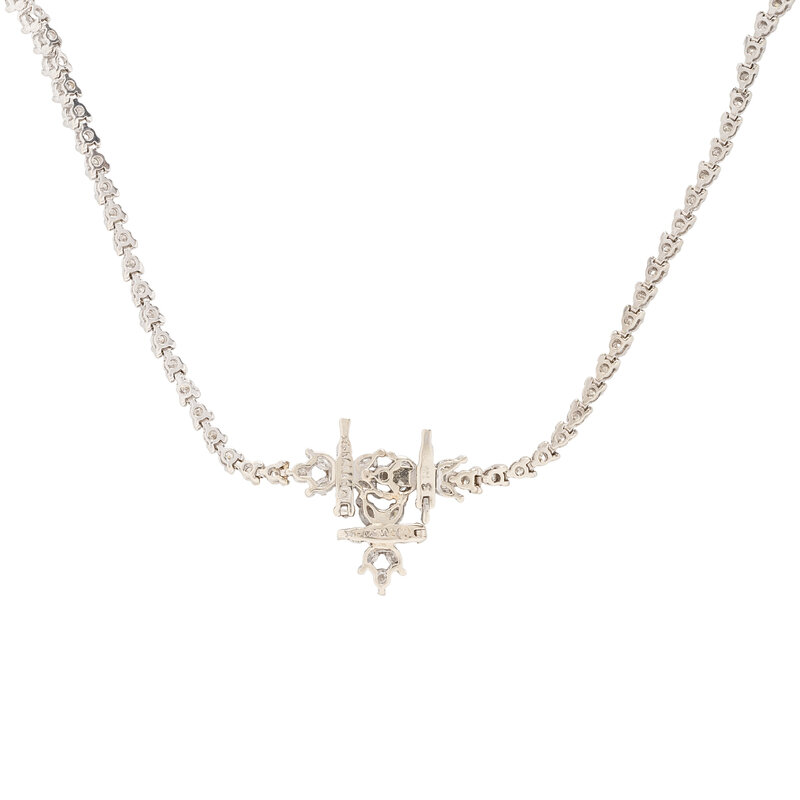 Round and marquise cut diamonds weighing approximately 6.50 carats total. 14 karat white gold. 17 3/4 inches long.