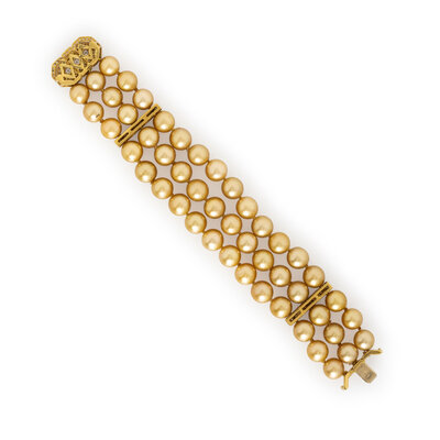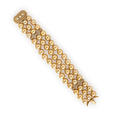 CULTURED GOLDEN PEARL, DIAMOND, AND YELLOW GOLD BRACELET