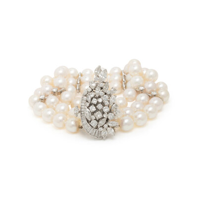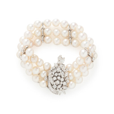 CULTURED PEARL, DIAMOND, AND PLATINUM BRACELET