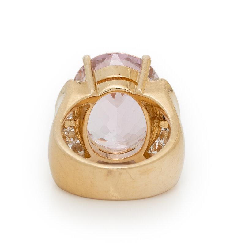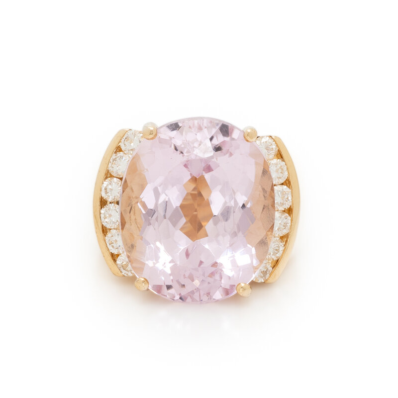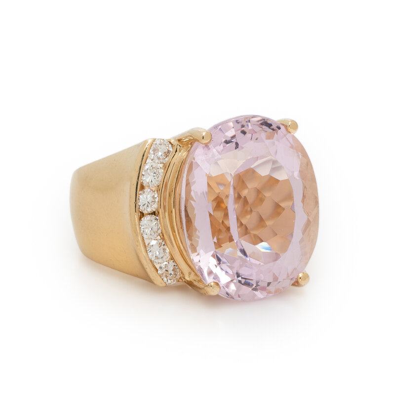KUNZITE, DIAMOND, AND YELLOW GOLD RING