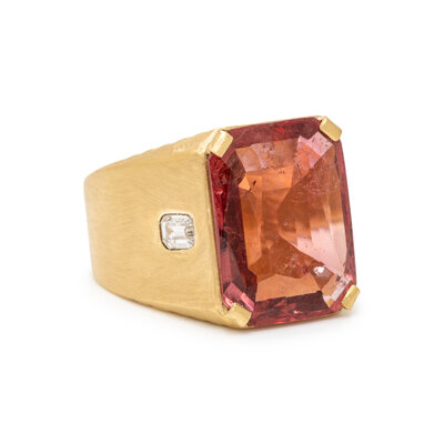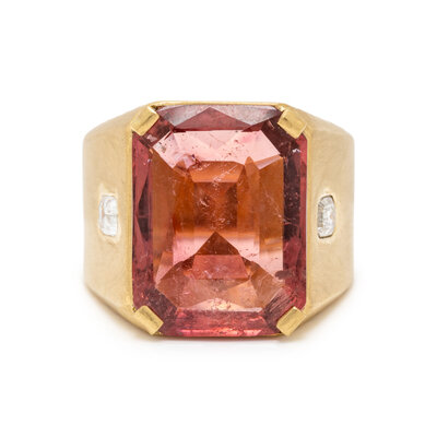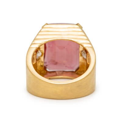 PINK TOURMALINE, DIAMOND, AND YELLOW GOLD RING