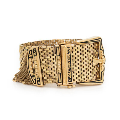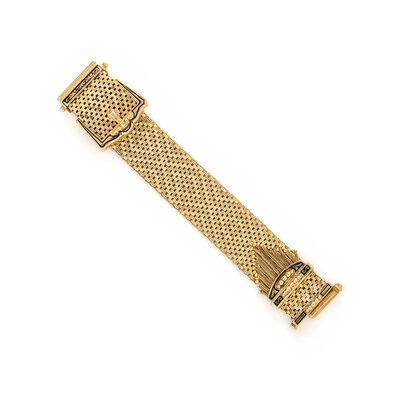 Bracelet/Strap: 14K yellow gold with black enamel inlay