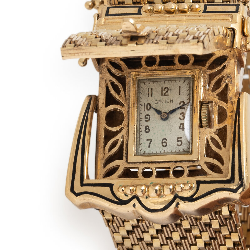 GRUEN, 14K YELLOW GOLD SURPRISE WATCH