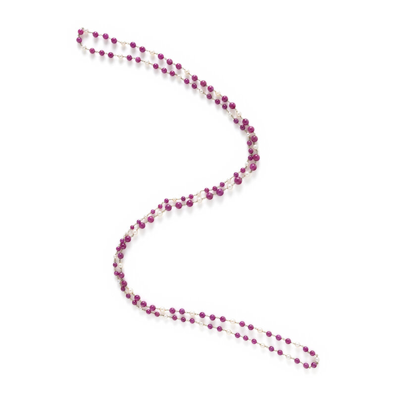 RUBY AND CULTURED PEARL NECKLACE