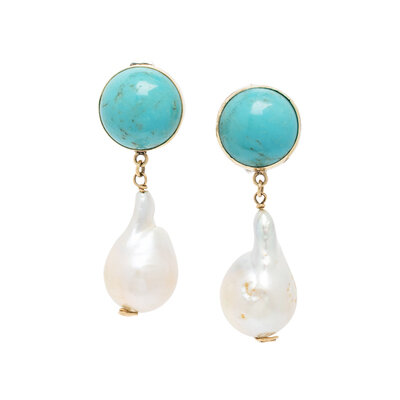 TURQUOISE AND BAROQUE CULTURED PEARL EARRINGS