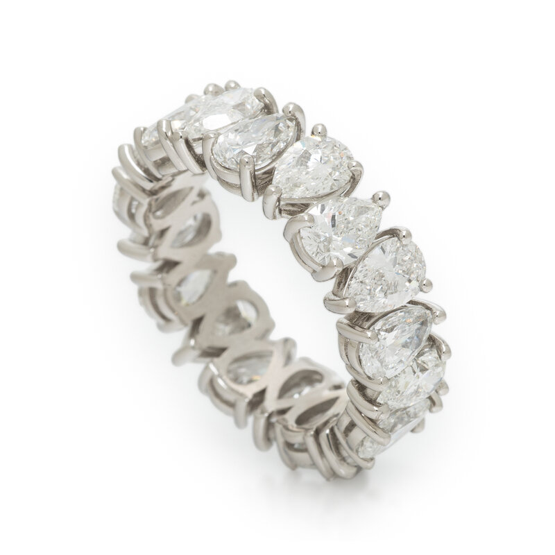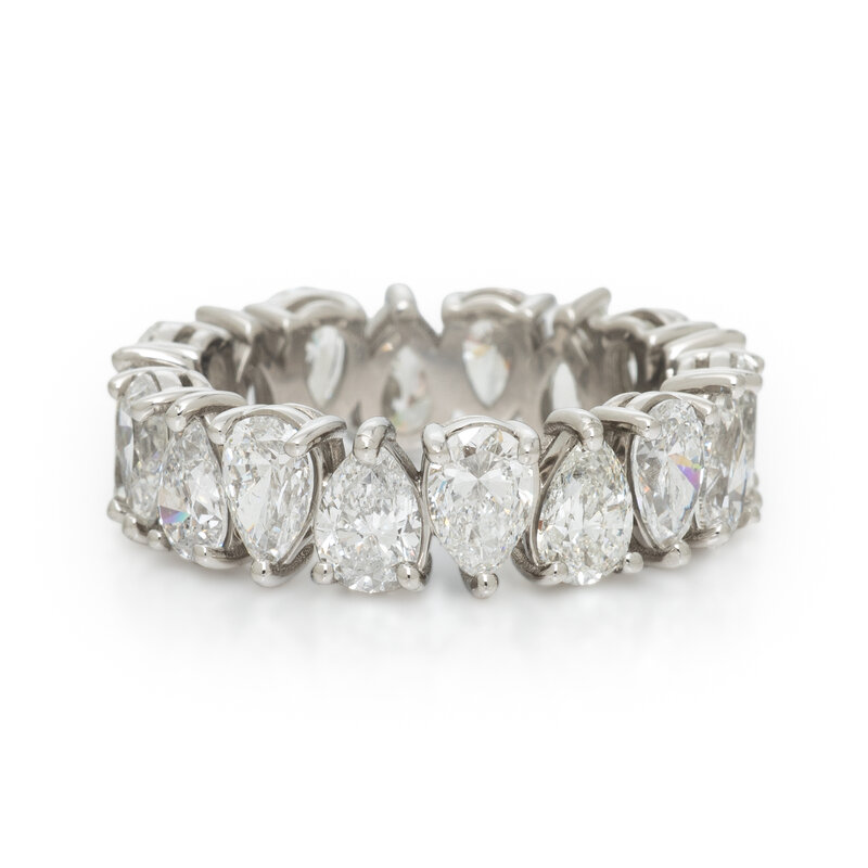 Pear shape diamonds weighing approximately 5.87 carats total. Platinum. Ring size 6 1/2.