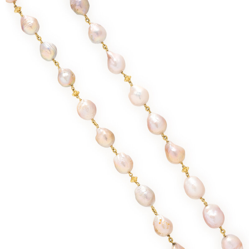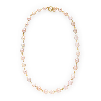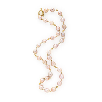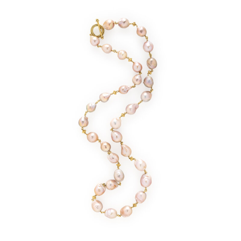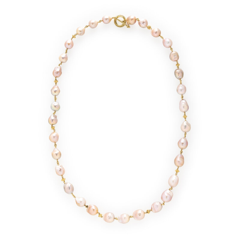 BAROQUE PINK CULTURED PEARL AND YELLOW GOLD NECKLACE