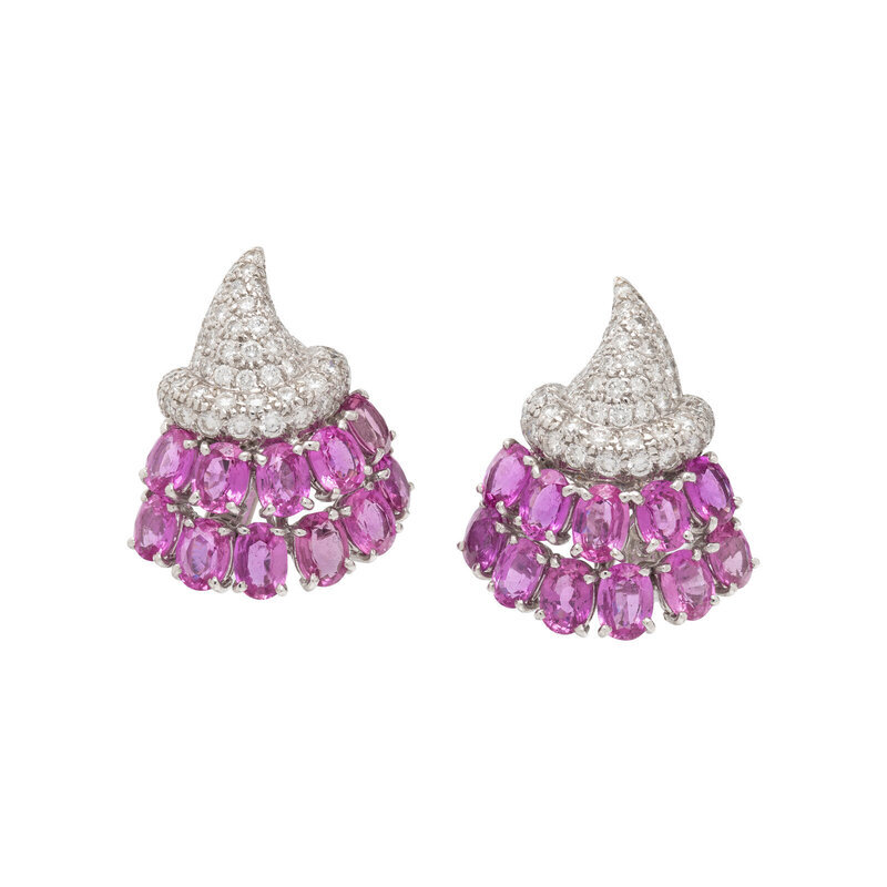 DIAMOND, PINK SAPPHIRE, AND WHITE GOLD EARRINGS