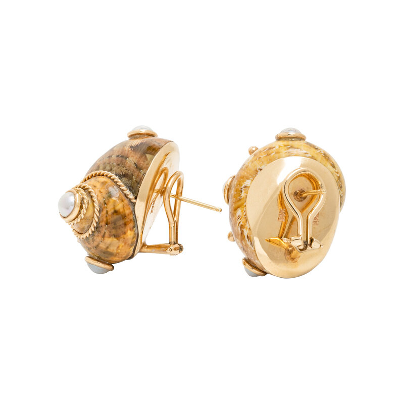 MAZ, TURBO SHELL AND CULTURED PEARL EARRINGS