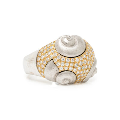 FOCHTMANN, DIAMOND, PLATINUM, AND YELLOW GOLD RING