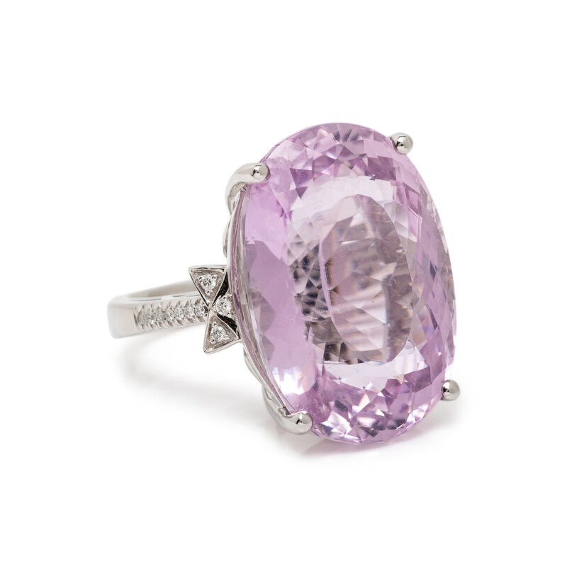 KUNZITE, DIAMOND, AND WHITE GOLD RING