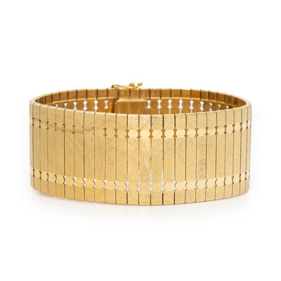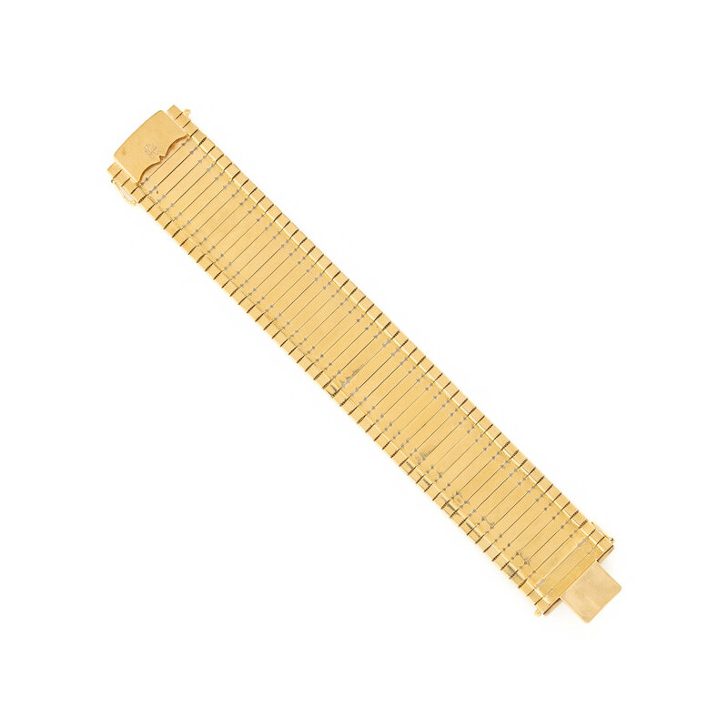18 karat yellow gold. 7 1/2 inches long, 1 1/8 inches wide.