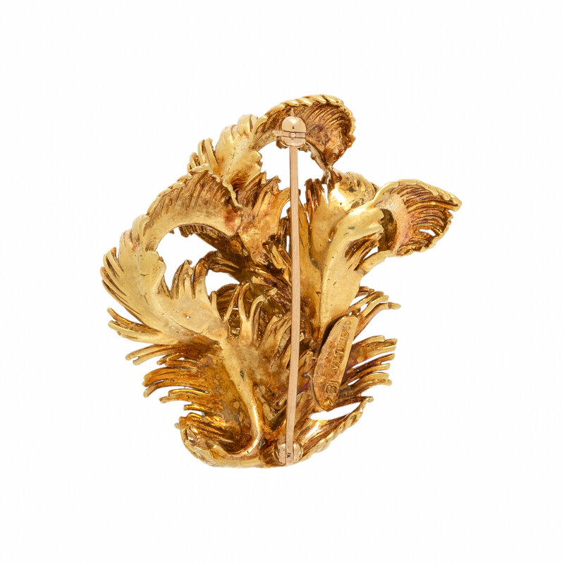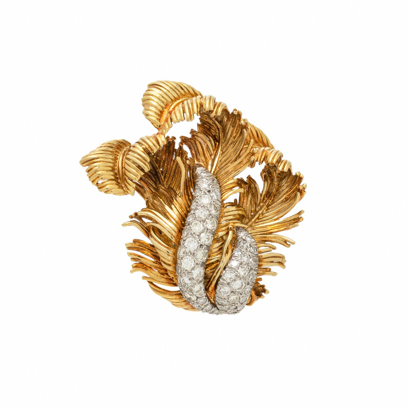 DIAMOND, YELLOW GOLD, AND PLATINUM BROOCH