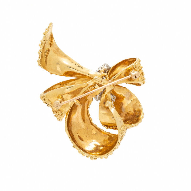 YELLOW GOLD AND DIAMOND BOW BROOCH