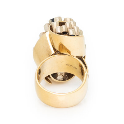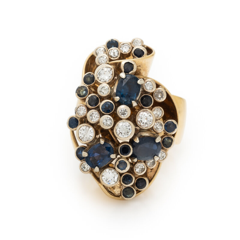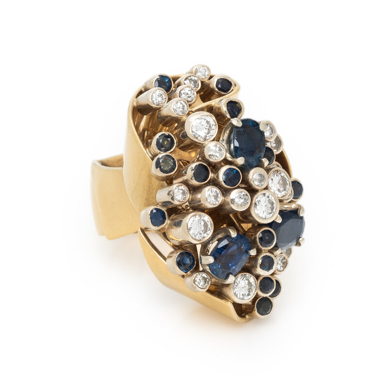 WACHLER, DIAMOND, SAPPHIRE, AND YELLOW GOLD RING