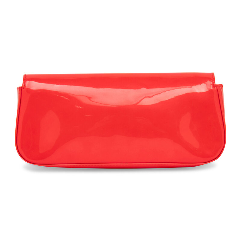 Sobo Pochette Clutch in pearlescent rose red patent leather with gold-tone hardware. Magnetic snap closure.