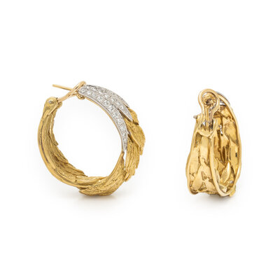 YELLOW GOLD AND DIAMOND HOOP EARRINGS