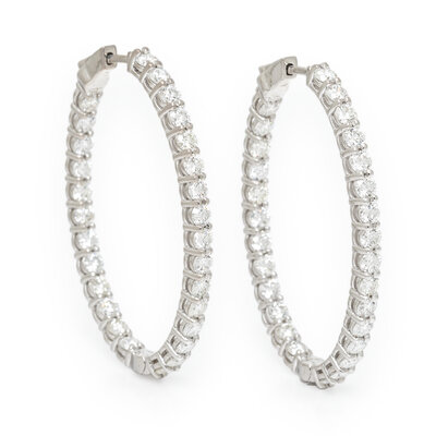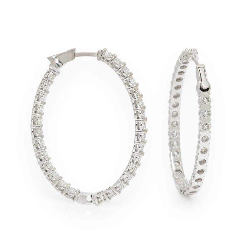 DIAMOND AND WHITE GOLD INSIDE OUT OVAL HOOP EARRINGS
