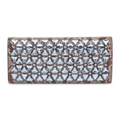GUCCI, BLUE PYTHON EMBELLISHED CLUTCH