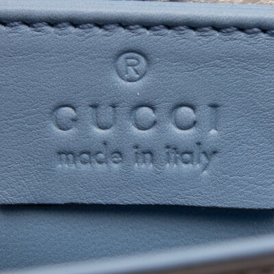 Details: Silver-tone hardware, magnetic snap closure to flap, light blue leather lining, one interior sidewall slip pocket