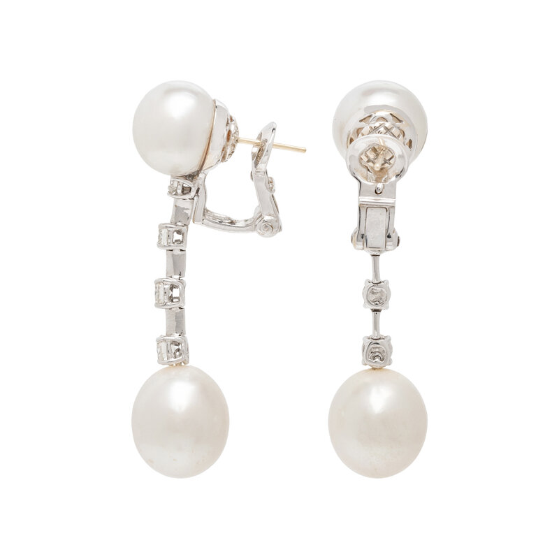 CULTURED PEARL, DIAMOND, AND WHITE GOLD EARRINGS