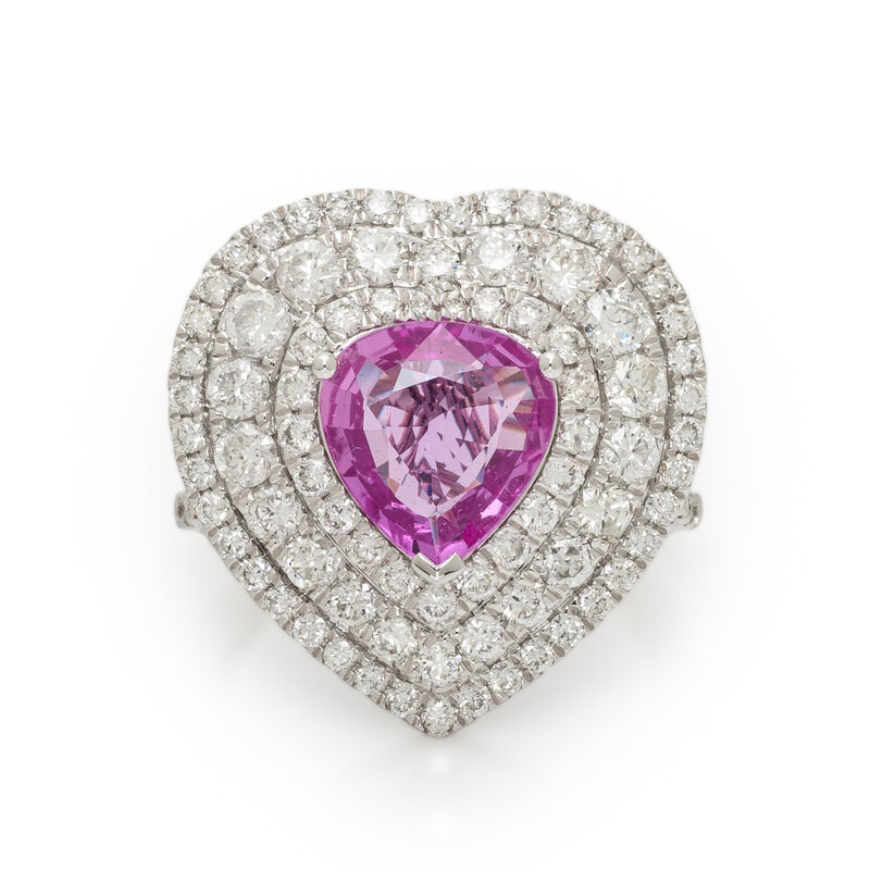 MICHAEL CHRISTOFF, PINK SAPPHIRE, DIAMOND, AND WHITE GOLD HEART RING