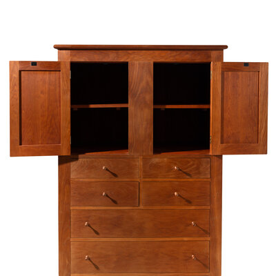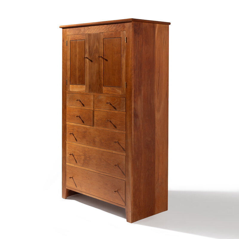 signed on bottom of lowest drawer opening 'Moser Cabinetmakers, Auburn, Maine, "2006" Greg Dehetu'